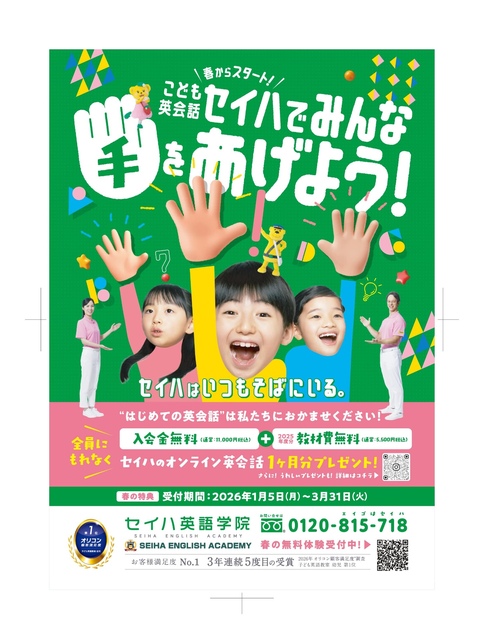 お得な入会特典がいっぱい! ①入会金通常11,000円(税込)→無料 ②1~3月入会生のみ2025年度教材費が無料 ③オンライン英会話レッスンUPトーク1か月分プレゼント 無料体験予約受付中!!!