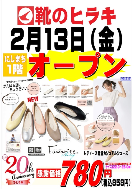 いつも靴のヒラキをご利用いただきありがとうございます。 この度、にしまち1階に移転オープンいたしました! 注目の春の新作を豊富に取り揃えております🌸 新しくなった靴のヒラキにご期待ください。 みなさまのご来店を心よりお待ちしております。