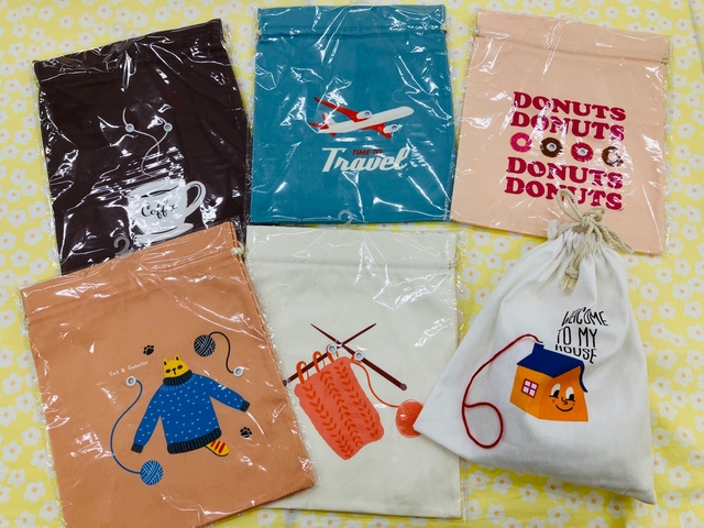 手編み作品の編みかけ、 どうしてますか…?? 穴が空いた巾着は 編みかけの保管や移動に便利です💕 毛糸巾着の新柄が入荷しました🙋